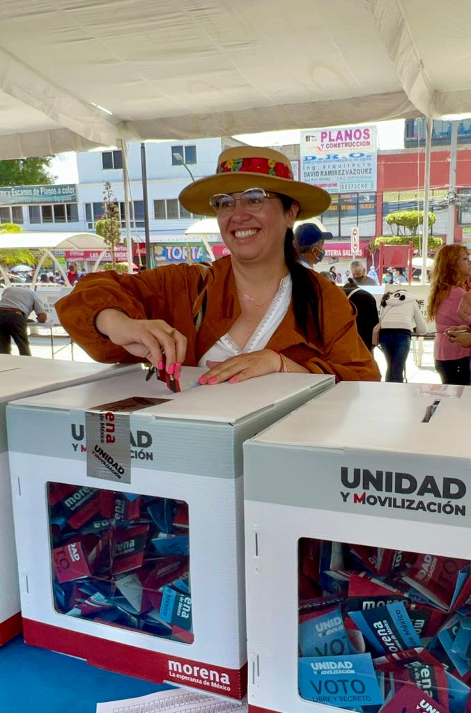En la explanada municipal de San Cristóbal, donde los comicios internos del partido transcurrieron con gran afluencia y sin incidentes, se registraron un total de 6,329 votos para las planillas de mujeres congresistas, de las cuales, la legisladora de Morena obtuvo casi la mitad de los votos con 2 mil 999 sufragios.