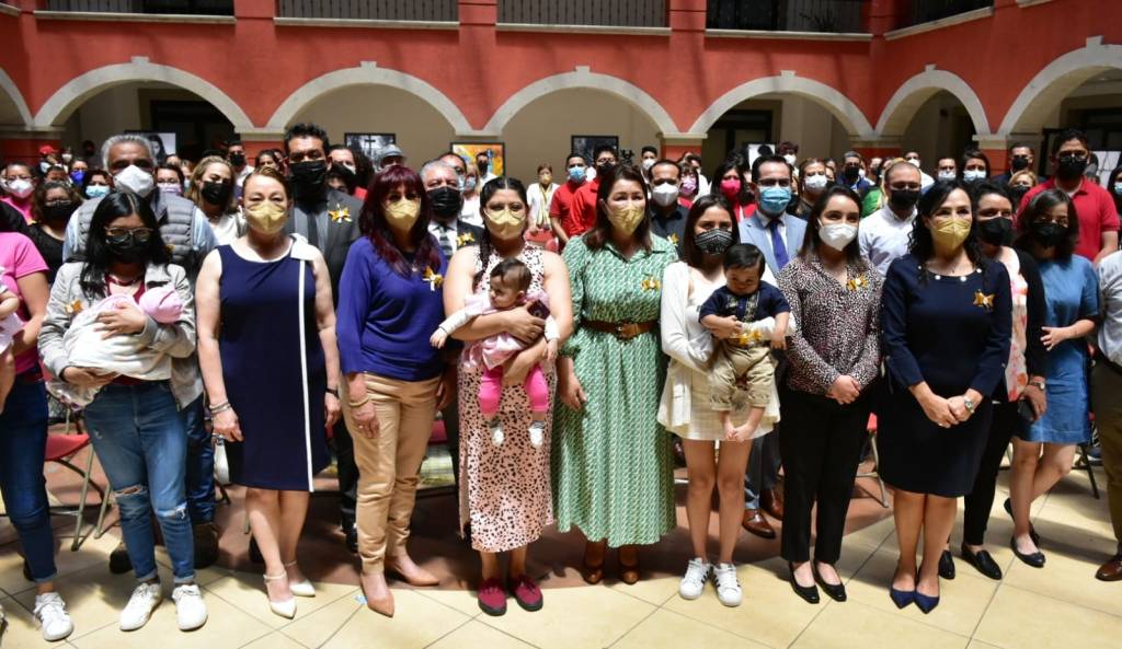 María Gómez acompañada de la directora del DIF Municipal, María de Lourdes Montiel, de la fotógrafa María Fernanda Martínez, así como mamás lactantes, recorrieron una exposición fotográfica en el patio del Claustro Jorge Fons, cuyo fin es sensibilizar a la población de la importancia de la lactancia materna.