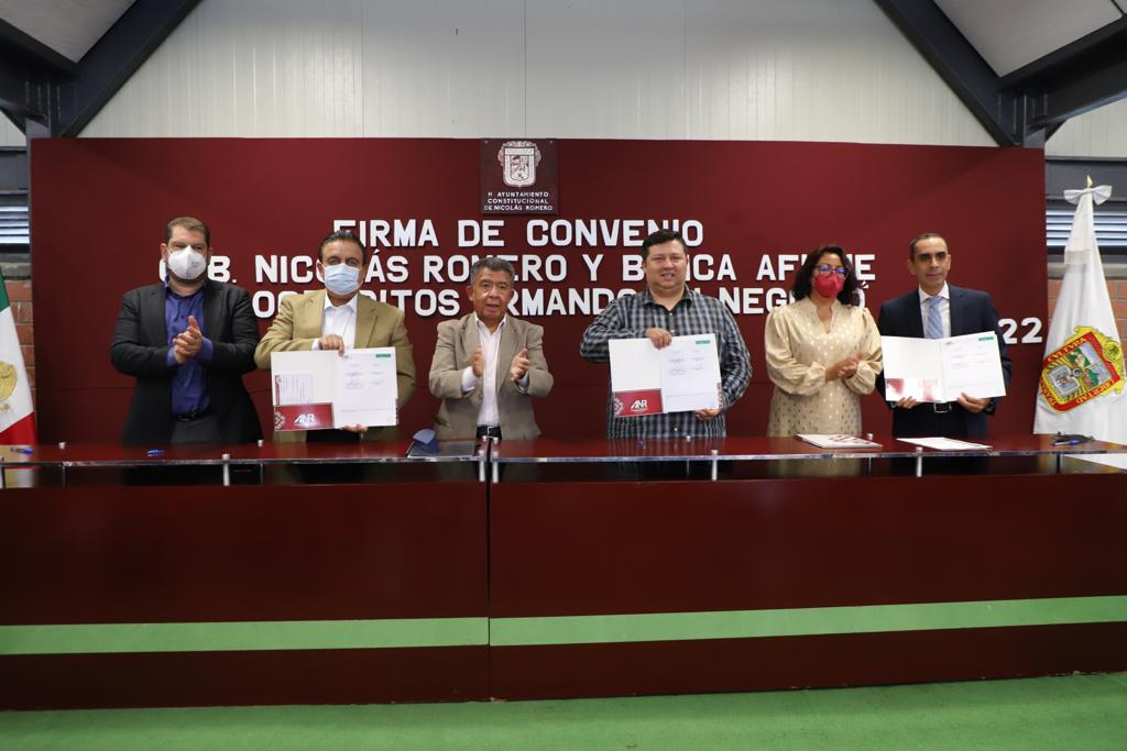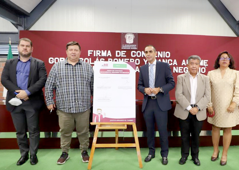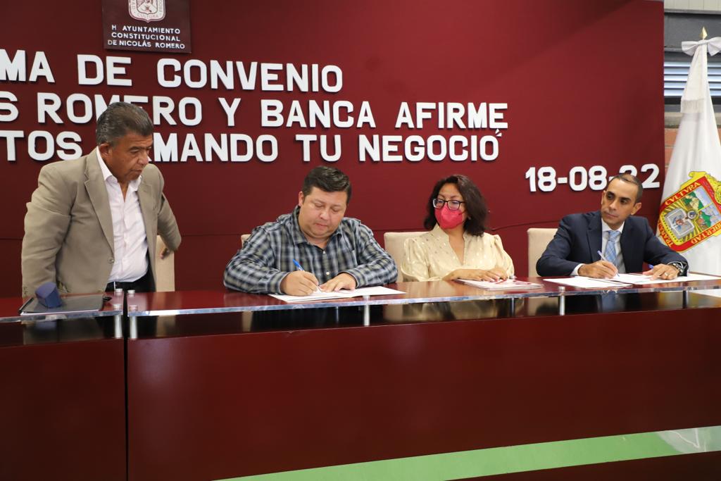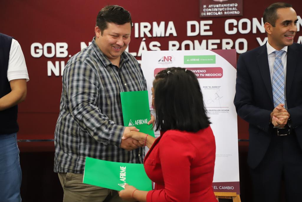 Nicolás Romero, Méx.- La reactivación de la economía en el municipio y el fomento del consumo local, son temas prioritarios en la agenda del alcalde Armando Navarrete López, ya que ello contribuye a contrarrestar los efectos financieros negativos, dejados por la pandemia de Covid-19, por lo que en apoyo a mujeres y hombres que tienen micro, pequeñas y medianas empresas asentadas en la demarcación, el edil nicolásromerense suscribió un convenio de colaboración con Banca Afirme, para poner en marcha el programa “Nicocréditos, Armando tu Negocio,” que les ayudará a fortalecerlas, haciéndolas más competitivas.
