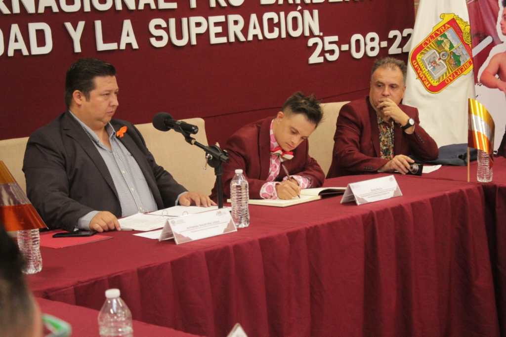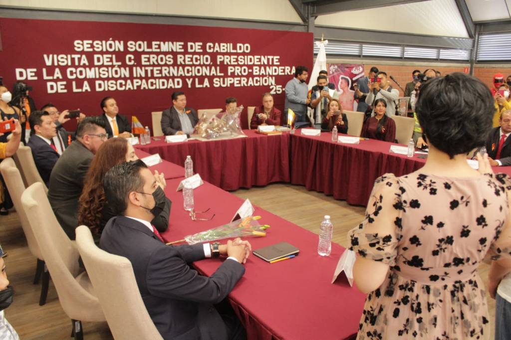 En tanto, Eros Recio, tras recibir como obsequio de parte del alcalde libros de historia del municipio escritos por el cronista local, Gilberto Vargas Arana, dio a firmar al munícipe y a los integrantes del cuerpo edilicio, un libro que lleva a todos los lugares del mundo donde acude para promover los derechos de los discapacitados, el cual también representa a las personalidades distinguidas.