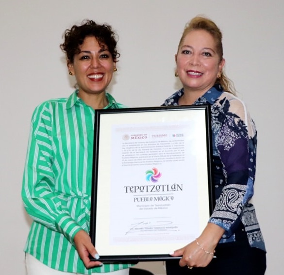 Tepotzotlán, Méx.- En el marco de la capacitación a prestadores de servicios turísticos que buscan la certificación de espacio naranja, la subsecretaria de turismo del gobierno del Estado de México, Denisse Ugalde Alegría, entregó a la presidenta municipal Ma. De Los Ángeles Zuppa Villegas, la actualización de la distinción que sigue acreditando a Tepotzotlán como Pueblo Mágico de México, por lo cual esta demarcación podrá seguir siendo parte de los 132 Pueblos Mágicos existentes en el país.