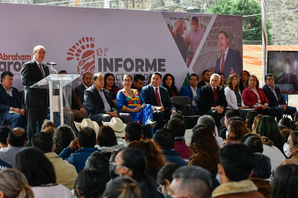 Desde la Plaza de los Insurgentes y acompañado por vecinas y vecinos, líderes indígenas, religiosos y sociales de municipios como Ocoyoacac, Lerma, Capulhuac, Santiago Tianguistenco, Texcalyacac y Ocuilan; así como de Maurilio Hernández González, titular del Poder Legislativo y Coordinador del Grupo Parlamentario de Morena y diputados de su bancada, Abraham Saroné, detalló cada una de las acciones que ha impulsado en materia educativa.