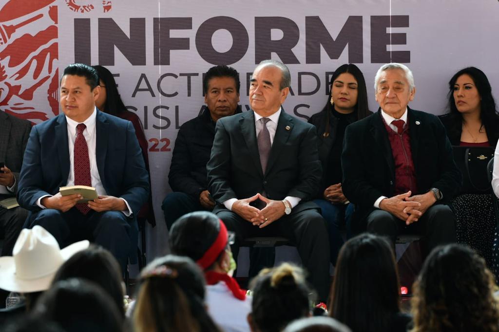 Al informe acudieron los diputados Azucenas Cisneros Coss, Faustino de la Cruz Pérez, Yesica Yanet Rojas Hernández, Rosa María Zetina González, Dionicio Jorge García Sánchez, Lourdes Jezabel Delgado Flores, María del Rosario Elizalde Vázquez.