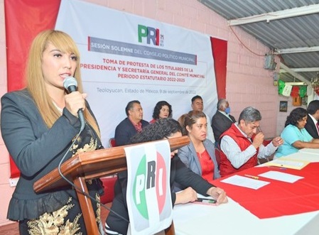 Arropada por el priísmo teoloyuquense, representado en ex alcaldes y ex diputados como; Víctor Hugo Rojas, Gerardo Liceaga, Fortino Vargas y Aarón González Rojas, ediles actuales, ex presidentes de partido, líderes sociales, transportistas, dirigentes de sectores y ciudadanía en general, Rosario Pacheco tomó protesta estatutaria para el periodo 2022-2025 de la mano de su compañero de fórmula Pedro Muñoz Ruíz, que la acompañará en la Secretaría General del tricolor.