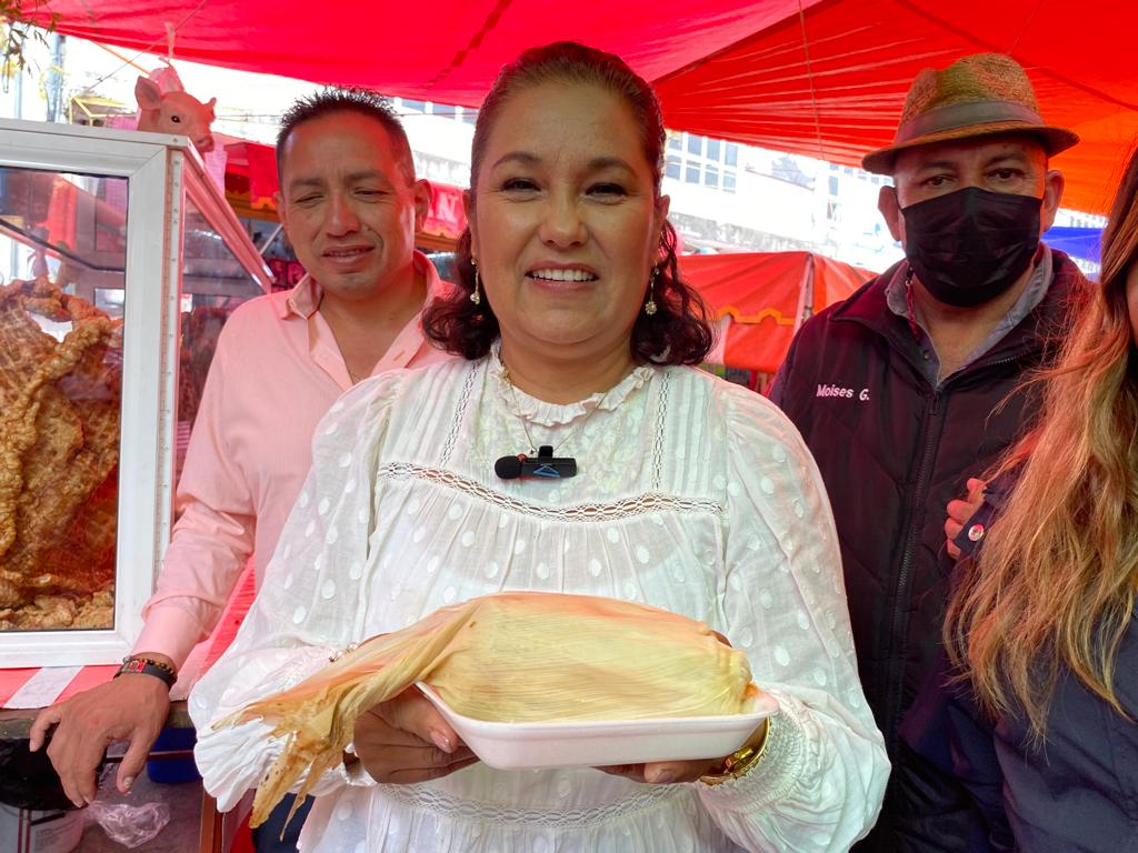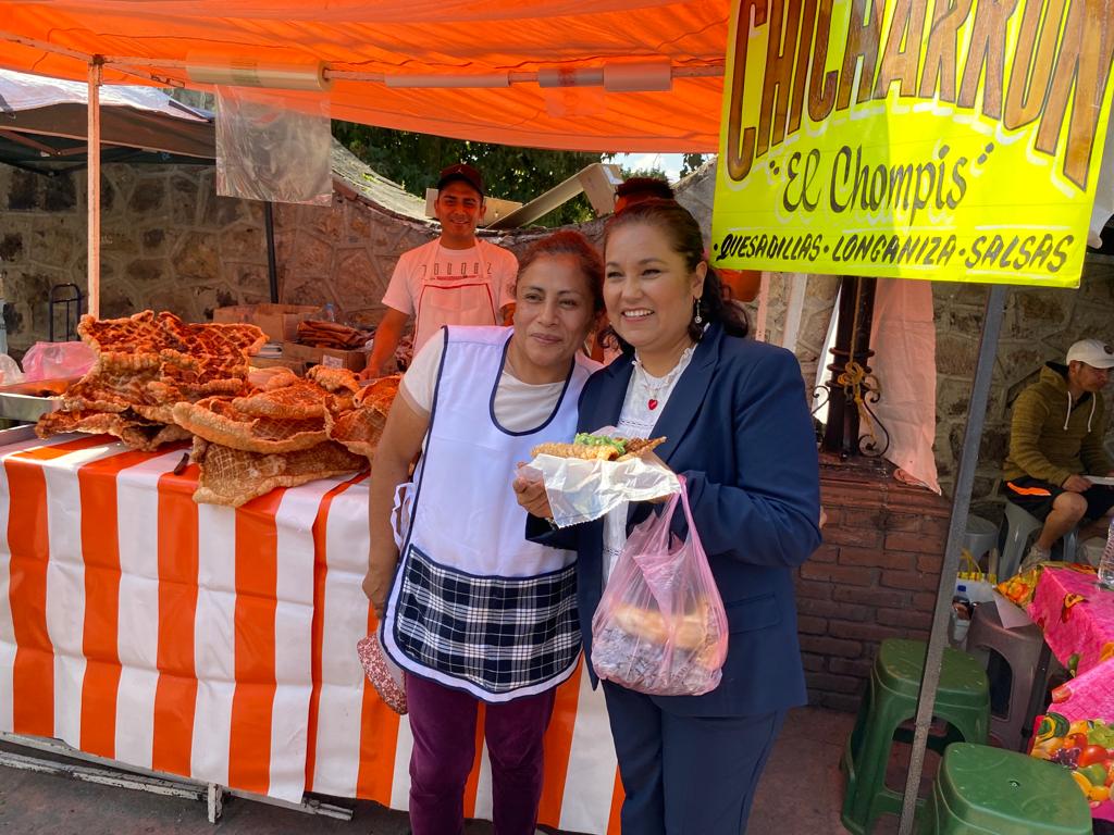 Durante su recorrido, reconoció el gran aporte que con su trabajo realizan miles de mujeres que se desempeñan en tianguis y mercados, pues gracias a su capacidad, empeño, dedicación y trabajo constante, la sociedad tiene acceso a productos de la cocina ancestral y tradicional mexicana a precios accesibles.
