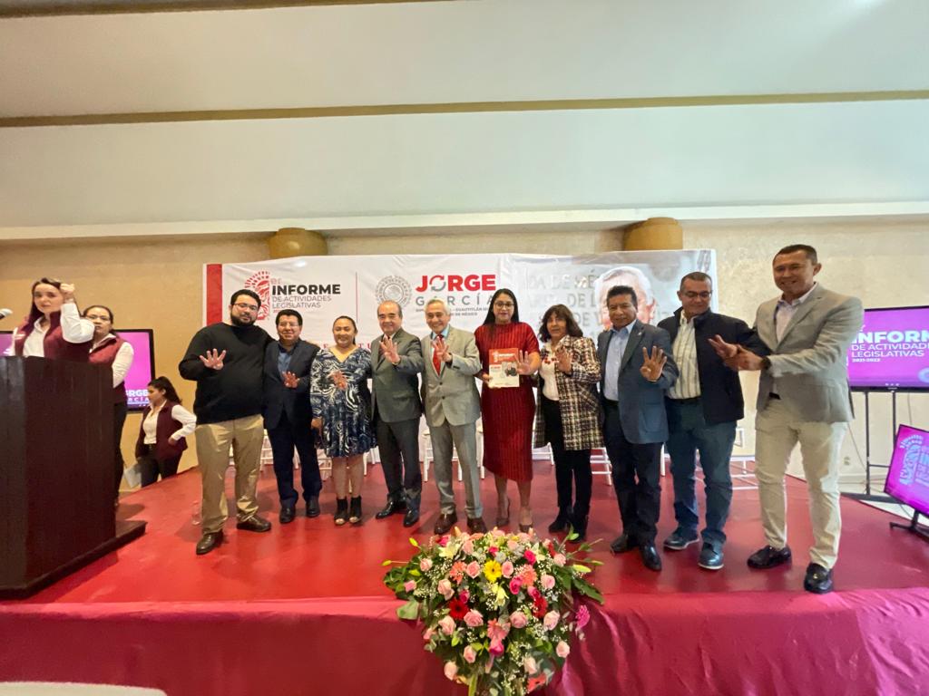 Cuautitlán Izcalli, Méx.- El diputado local de Morena, Jorge García Sánchez, al rendir su Primer Informe de Actividades Legislativas afirmó, “como legislador mi compromiso, es seguir trabajando de la mano de la gente, buscando en todo momento un mejor Estado de Bienestar que siente las bases sociales y abra camino a la Cuarta Transformación en el Estado de México” y asumo con responsabilidad legislar, fiscalizar y gestionar.