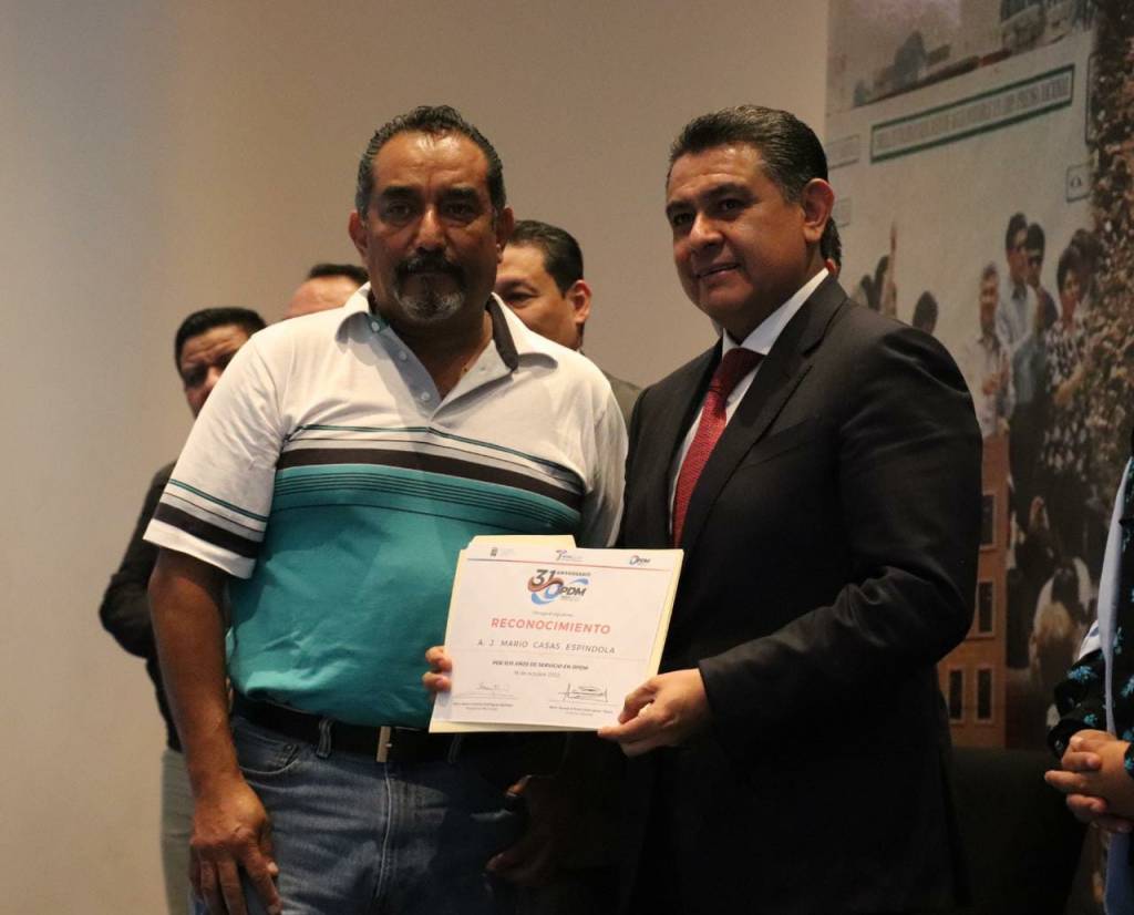 De manera simbólica, se entregó reconocimiento a Mario Casas Espínola, Raúl Morales García y Justo José Luis Huerta, además de reconocer a los 28 empleados que tienen más tiempo en el organismo.