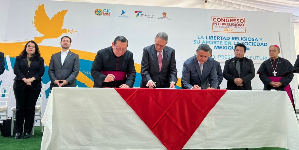 Junto con autoridades estatales y eclesiásticas, Rodríguez Hurtado firmó la Declaración del Año de la Libertad Religiosa en el Estado de México.
