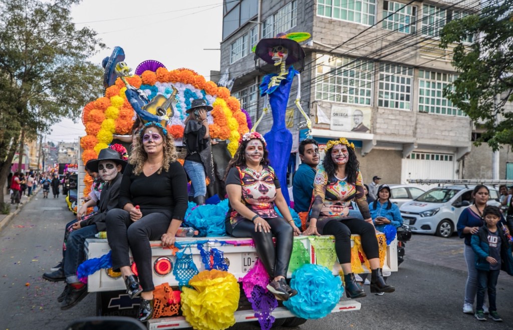 Cientos de familias coacalquenses salieron a las avenidas principales para disfrutar del desfile de Catrinas que encabezó David Sánchez Isidoro, presidente municipal de Coacalco y la presidenta del DIF Municipal, María de Lourdes González Ocampo, con un contingente aproximado de 50 motociclistas y 25 carros alegóricos.