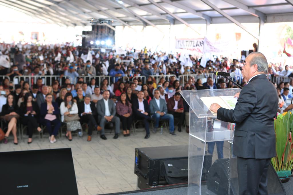 Tultitlán, Méx.- Al rendir su Primer Informe de Actividades Legislativas, el diputado Maurilio Hernández González afirmó que los representantes populares emanados del Movimiento de Regeneración Nacional están obligados a cambiar el modelo neoliberal de más de 90 años en el Estado de México, por el del estado de bienestar que representa la Cuarta Transformación, y hacia el cual avanzan unidos y organizados.