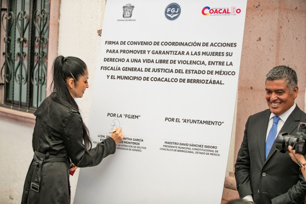 Coacalco, Méx.- Para fortalecer la seguridad de las coacalqueses, el gobierno de Coacalco y la Fiscalía General de Justicia del Estado de México (FGJEM), firmaron un convenio de Coordinación de Acciones para Promover y Garantizar a las Mujeres su Derecho a Una Vida Libre de Violencia.
