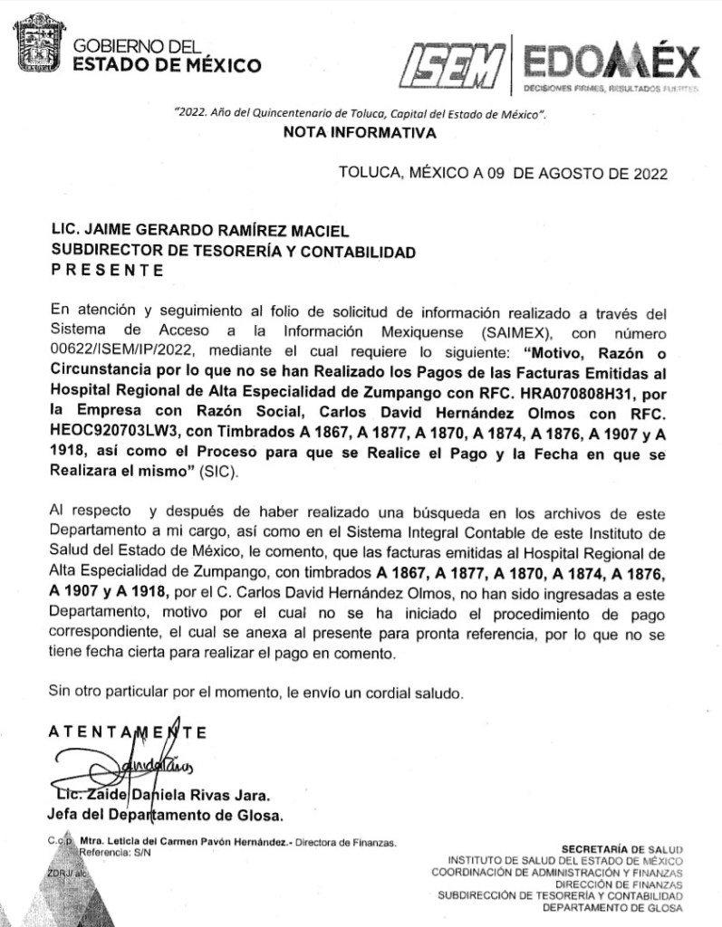 Mencionó que hasta el momento el gobernador Alfredo del Mazo Maza y su equipo de Finanzas no ha manifestado ningún comentario respecto a una nueva petición de autorización de otro préstamo.