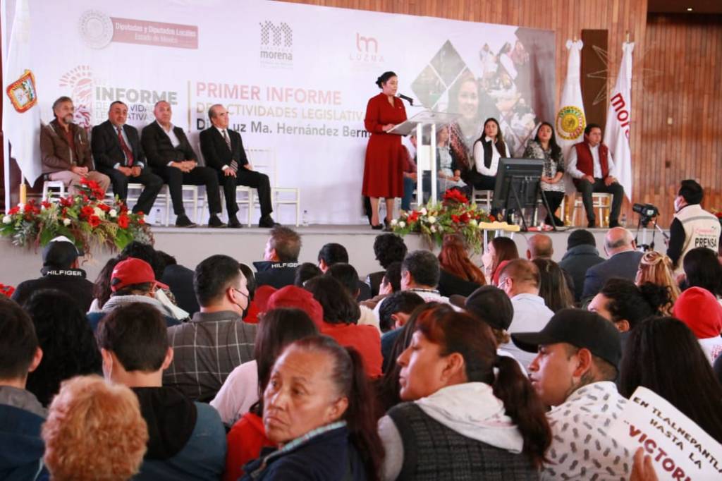 Toluca, Méx.- Al sostener que su principal motivación y objetivo es mejorar las condiciones de vida de las y los mexiquenses LuzMa Hernández Bermúdez, diputada del Grupo Parlamentario de Morena, al rendir su primer informe de trabajo legislativo dijo que para aportar soluciones a los problemas que aquejan a la población y abrir oportunidades de crecimiento y desarrollo se ha dado a la tarea construir y perfeccionar las leyes e instituciones del Estado de México.