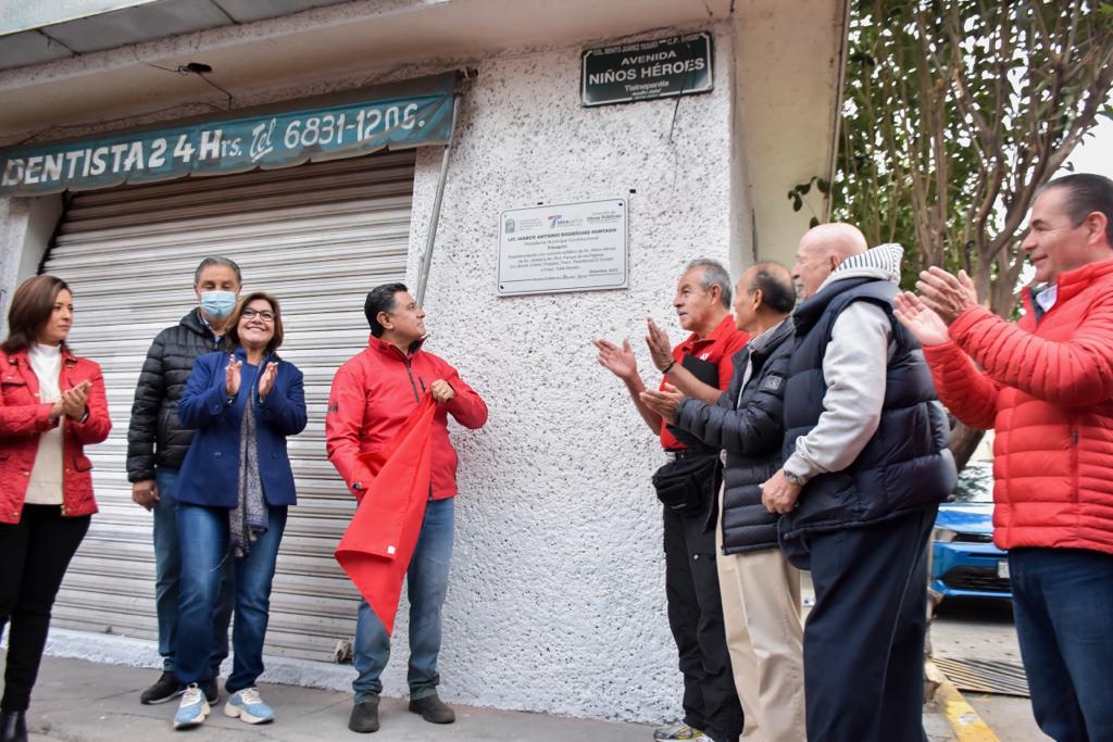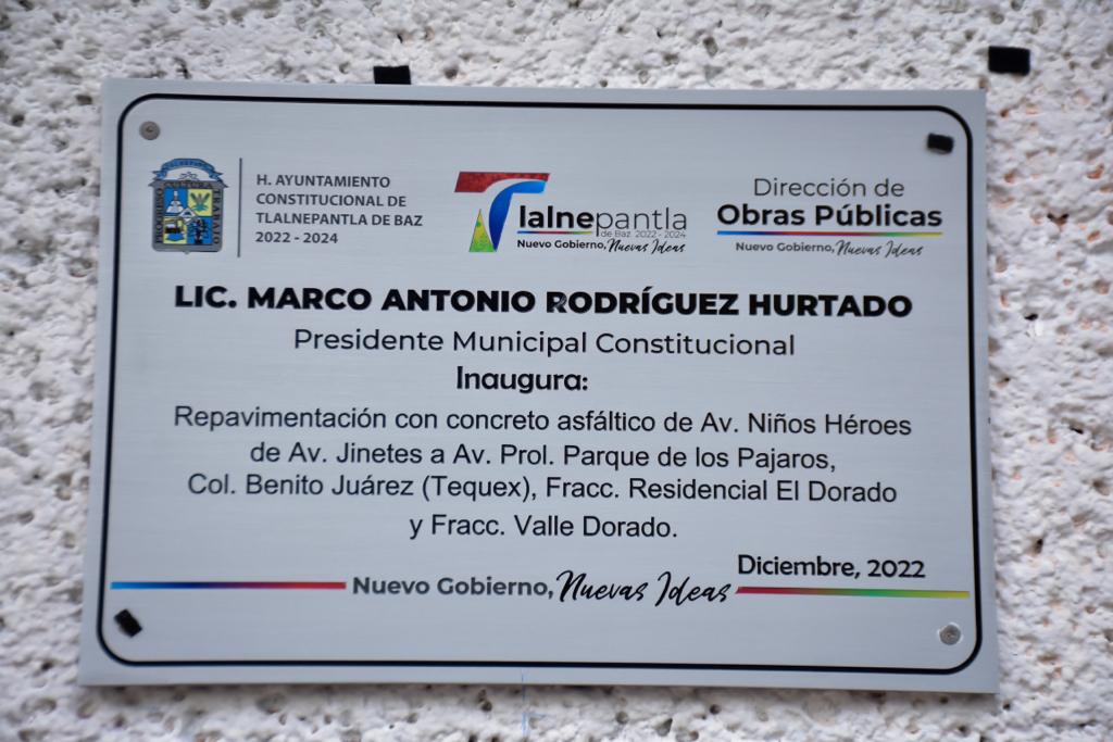 Tlalnepantla, Méx.- Con una inversión de los 20 millones de pesos. El Presidente Municipal, Marco Antonio Rodríguez Hurtado entregó la avenida Niños Héroes de la zona El Dorado, rehabilitada en su totalidad, así como obras hidráulicas, con el propósito de aligerar la carga vehicular de Tlalnepantla y Atizapán, además de mitigar las inundaciones que se presentan en temporada de lluvias.