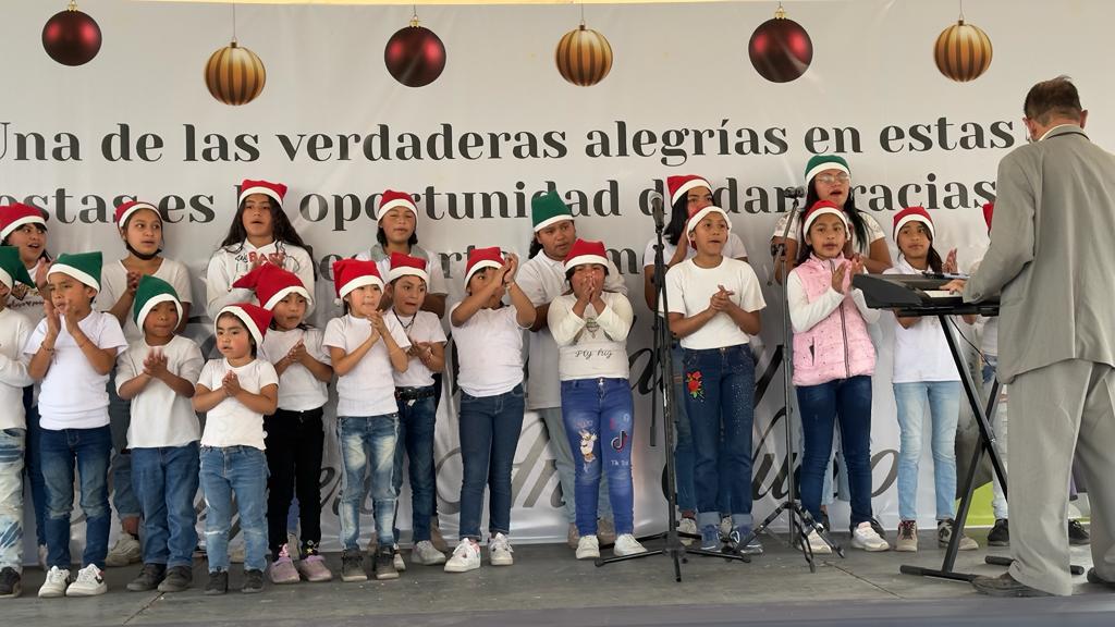 El coro, que lleva un mes de haberse reintegrado tras la pandemia, conformado por niños de 4 a 19 años, interpretaron diversas melodías como “Bésame mucho”, “Las Mil y unas noches”, Vivir al este del Edén, Campana sobre campana y Color de Esperanza.