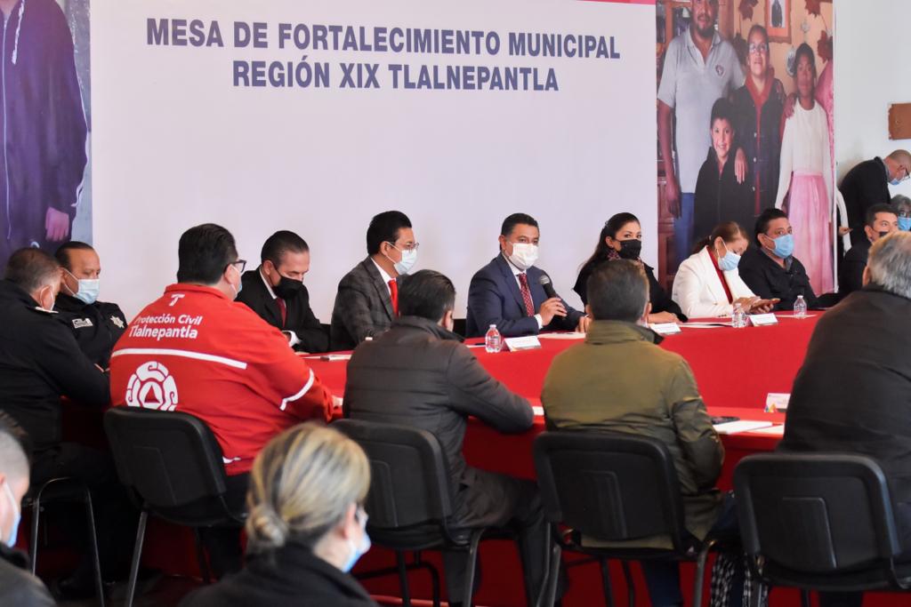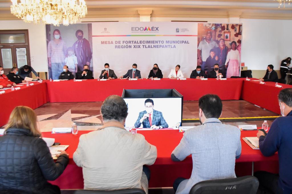 Tlalnepantla, Méx.- En el marco de la Mesa de Fortalecimiento Municipal donde se presentaron los informes de los trabajos en materia social, seguridad, salud e infraestructura en Tlalnepantla, el Alcalde Marco Antonio Rodríguez Hurtado llamó a la población a reforzar las medidas de prevención por el repunte de casos de Covid, principalmente en el uso de cubrebocas, así como evitar la quema de cuetes, llantas y madera durante las fiestas decembrinas, para evitar el incremento de la contaminación ambiental.Ante la Secretaria de Desarrollo Social del Gobierno del Estado de México, Brenda Alvarado Sánchez, quien por primera vez participa en esta mesa de trabajo de la Región XIX Tlalnepantla, el Presidente Municipal ratificó el clima de colaboración de su Administración con el Gobernador Alfredo del Mazo y sus representantes.”Para nosotros el hecho de que ya estés aquí, nos da fortaleza, pero sobre todo cerrar este año de gobierno fuertemente en una coordinación muy estrecha, muy sólida, de mucha respuesta. Hemos tenido un gobierno muy dinámico para generar respuestas rápidas, y eso ha favorecido que el Gobierno del Estado nos favorezca con acciones muy concretas como CAEM en perforación de pozos, plantas potabilizadoras, la rehabilitación de cárcamos, y en muchas áreas”, subrayó el Munícipe.En ese contexto, la Secretaria Alvarado Sánchez resaltó que el trabajo en equipo permite entregar buenos resultados en Tlalnepantla, y prueba de ello son el rescate de los parques que estaban abandonados en la zona Oriente del municipio.”Que podamos seguir dándole seguimiento a estos temas de coordinación que está haciendo el Gobierno del Estado junto con el municipio de Tlalnepantla. Como bien dice el presidente y lo aplaudo, de que podamos generar en torno a estas obras que se están haciendo, esa rehabilitación. Vi con agrado los parques que se están rehabilitando, y sigamos teniendo esta oportunidad de entregar buenas cuentas”, apuntó la titular de Desarrollo Social estatal.Durante la 38 sesión ordinaria de la Mesa de Fortalecimiento, se dieron a conocer los avances de la construcción de la línea 2 del Mexicable que cruzará la zona alta de Tlalnepantla, donde se han realizado obra sociales complementarias como colocación de banquetas y guarniciones, alumbrado y senderos seguros, lo cual beneficiará a 29 mil usuarios al hacer un recorrido hasta Indios Verdes en 22 minutos.El Comisario de Seguridad Pública y Tránsito Municipal, Arturo Centeno Cano presentó los resultados de la Policía Intermunicipal con resultados satisfactorios, además de los operativos de Buen Fin y de Peregrinos 2022, los cuales concluyeron sin novedad.También recordó que estarán en marcha las acciones de seguridad para proteger a los paisanos que vienen de Estados Unidos, a quienes saldrán este fin de año de vacaciones y a los “Reyes Magos”.De igual manera se dieron a conocer los avances de la rehabilitación del auditorio de la escuela secundaria Niños Héroes, a la que se comprometió la ex titular de Desarrollo Social, Alejandra del Moral al inicio del ciclo escolar 2022-2023, donde se reparó el techo, los pisos, baños y plafones, cuya obra estará lista a principios de enero próximo.
