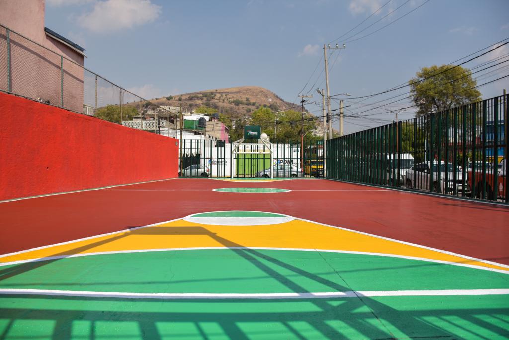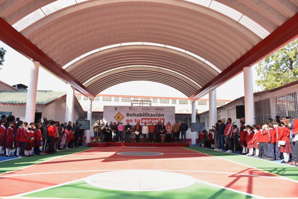 De igual forma, en la primaria “Josefa Ortiz de Domínguez”, en la colonia La Blanca, con un presupuesto de un millón 887 mil 784 pesos se efectuaron los trabajos correspondientes para la colocación de 384 metros cuadrados de cubierta a base de arcos modulares, 36 metros cuadrados de lámina traslúcida y se aplicaron 400 metros cuadrados de pintura en la cancha deportiva.