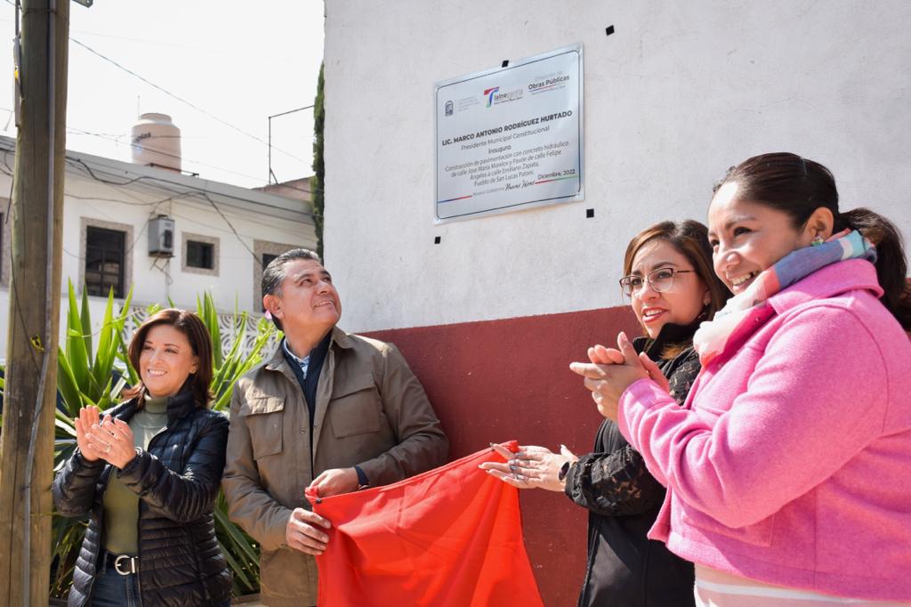 Finalmente, con un presupuesto de dos millones 585 mil 306 pesos, Tony Rodríguez entregó la repavimentación de la calle Malinche, en El Arenal, en donde se construyó una carpeta de concreto hidráulico en mil 339 metros cuadrados, 455 metros cuadrados de banqueta, 728 metros lineales de guarniciones y se cambiaron 34 tomas domiciliarias.