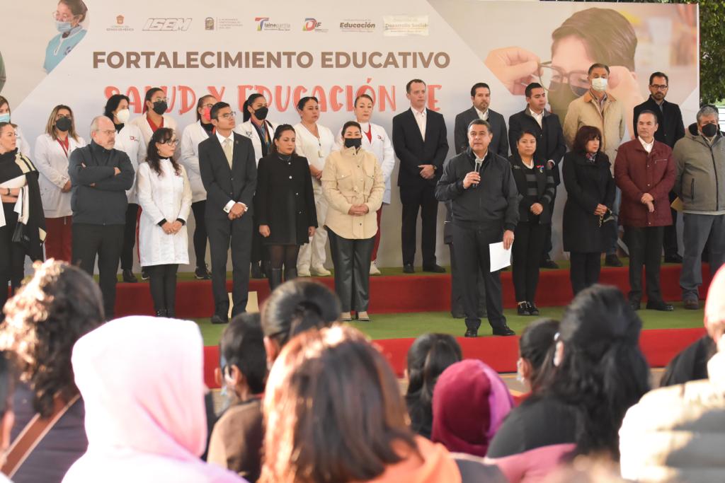 “Si la niña o el niño necesita lentes se los vamos a dar gratuitos; si necesita un auxiliar auditivo, se lo vamos a dar; si necesita una plantilla y otra atención, lo vamos a platicar con el Comité de Salud. Esto es un tema profesional y se trata que la educación y la salud de 10 tiene que ver con las herramientas educativas que ya se mencionaron con la infraestructura, pero también tiene que ver que sus niñas y niños, en un interés nuestro, estén al 100 por ciento en su salud, y que si tienen alguna alteración, se corrija”, afirmó.