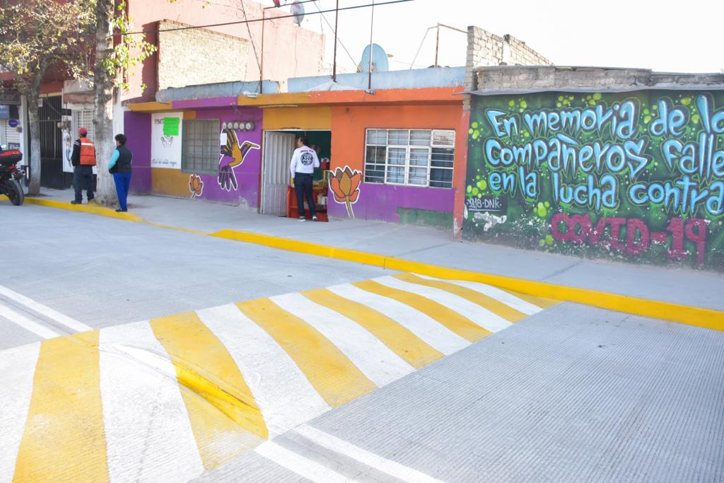 En la calle Emiliano Zapata, de la colonia San Juan Ixhuatepec, se realizaron 3700 metros cuadrados de trazo y nivelación de terreno natural; 260 metros cúbicos de fresado de siete centímetros de espesor; 5200 metros cuadrados de carpeta asfáltica con espesor de 10 centímetros; 1500 m2 de banquetas y pintado de 300 m2 de guarniciones, con una inversión de seis millones 608 mil 741 pesos.