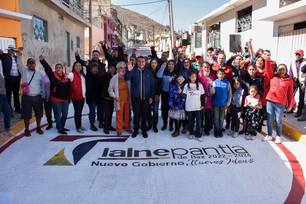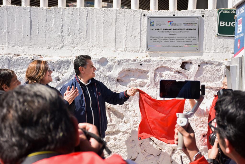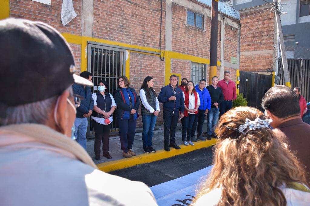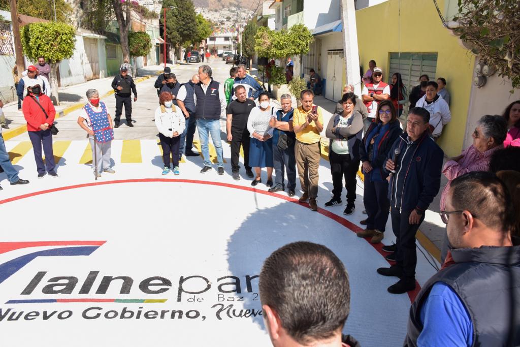 Posteriormente, el Alcalde entregó la obra de repavimentación de la calle San Buenaventura, en la Unidad Habitacional del mismo nombre, que se realizó en menos de un mes, con un costo de cinco millones 819 mil 740 pesos, donde se colocaron 5290 metros cuadrados de carpeta de concreto hidráulico, pintado de guarniciones, balizamiento y renivelación de pozos de visita.