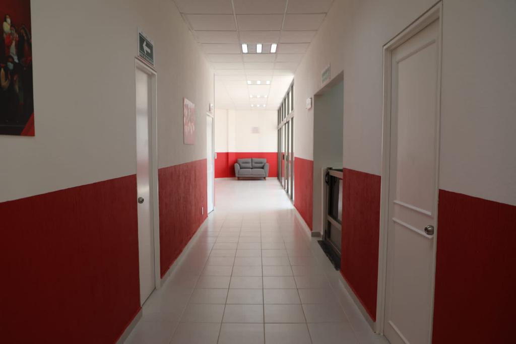 Además, se hizo la rehabilitación de todos los circuitos eléctricos, cambio de todas las luminarias y plafones, interiores de baños, pasillos, capilla, sala de entretenimiento, comedor, etc.; asimismo, retiro y cambio de más de 2 mil 100 m2 de falso plafón, cambios de apagadores, cambio de tablero de distribución de energía eléctrica, mantenimiento de las zonas hidrosanitarias de baños, cocinas, consultorios y áreas de servicios, sustitución de tinacos en mal estado, mil 152 m2 de impermeabilización, mil 800 m2 de pintura vinílica, mil 400 m2 de cambio de loseta, cambio de marco de ventanas, cambio de puertas, cambio de azulejo en el área de preparado de alimentos, entre otros.