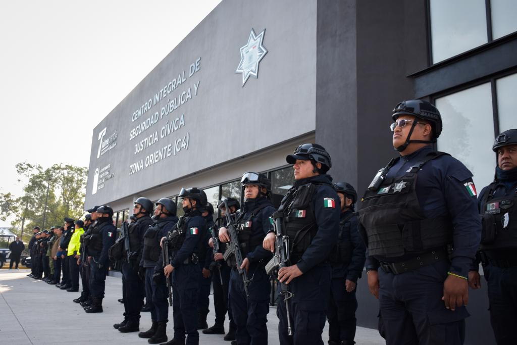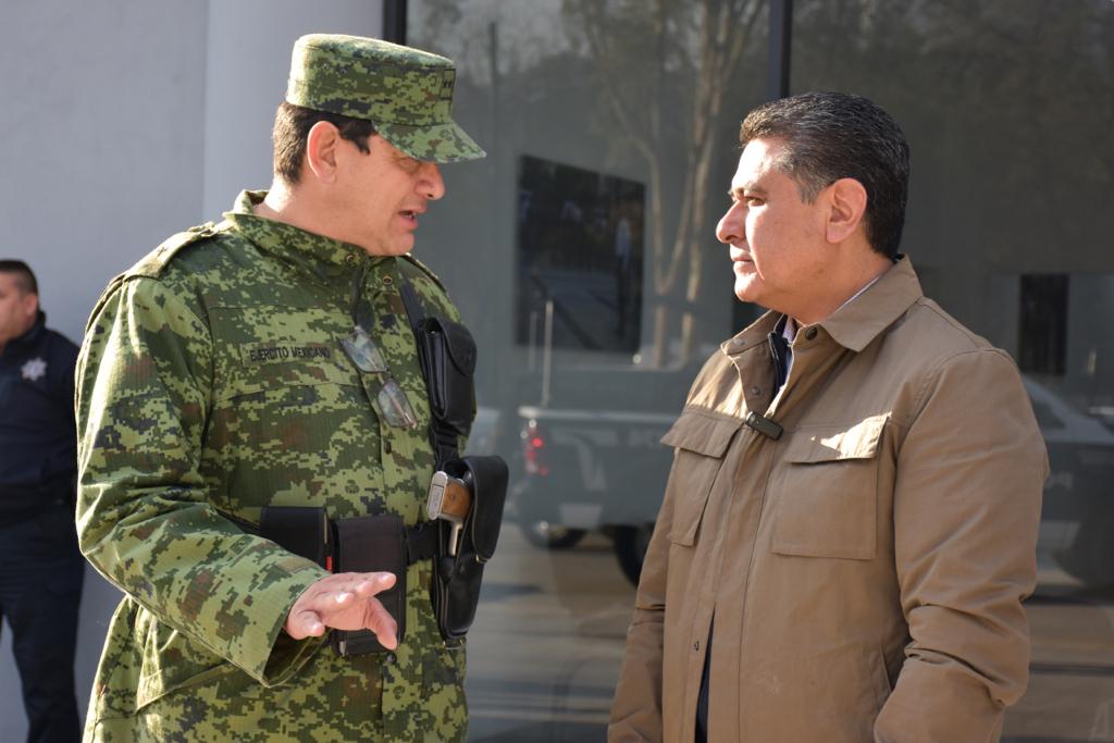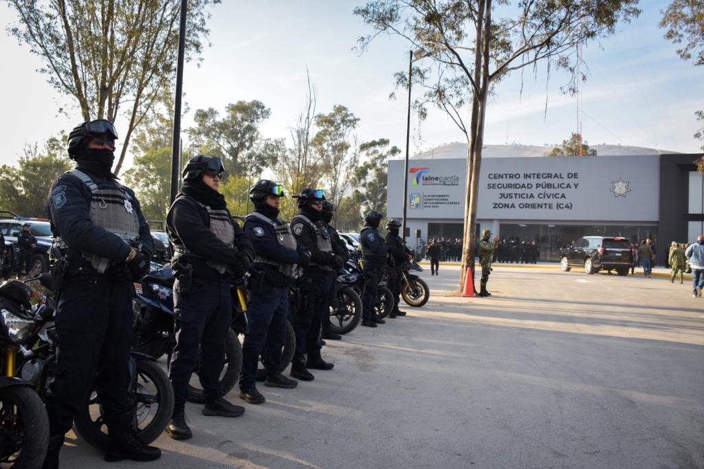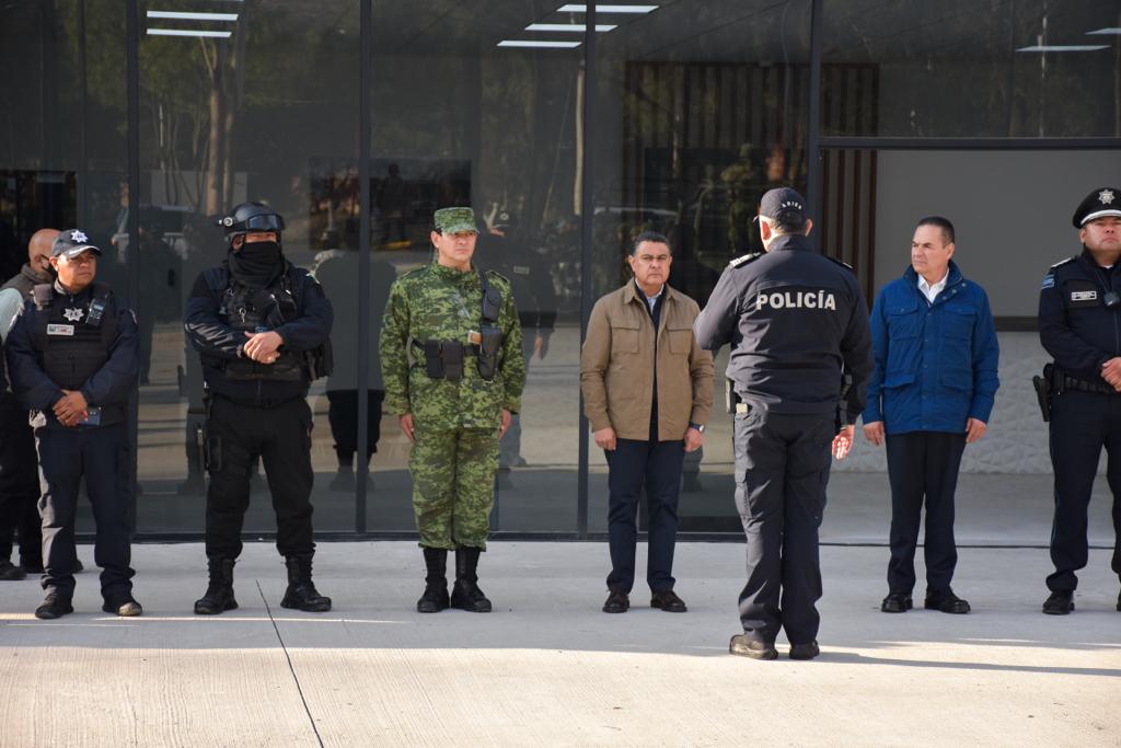 El Alcalde Marco Antonio Rodríguez Hurtado acompañado del Secretario del Ayuntamiento, Edmundo Ranero; el Comisario de Seguridad Pública, Arturo Centeno; el Teniente Coronel Armando Montiel, de la Sedena, y el Agente Mayor Valentín Pacheco, de la Guardia Nacional, dio la orden de salida a las fuerzas de seguridad desde el C4 de zona Oriente.