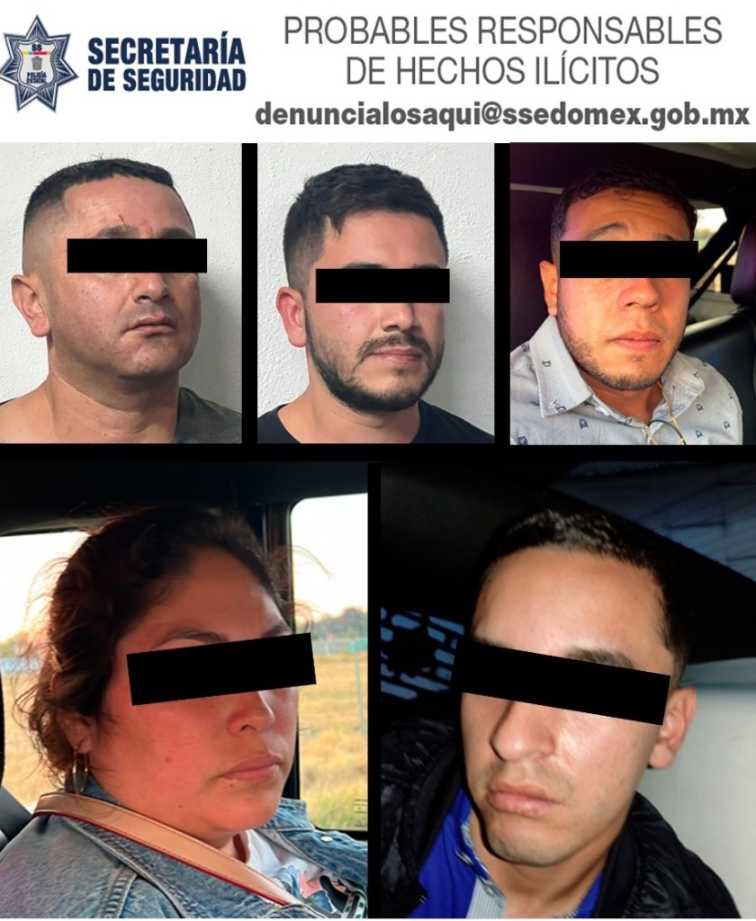 Lerma, Méx.- Resultado del trabajo de inteligencia y videovigilancia, cinco personas fueron detenidas por parte de la Secretaría de Seguridad (SS) y de la Policía Municipal de Metepec, después de haber sido denunciados como posibles responsables del delito de robo a casa habitación; cabe señalar que podría tratarse de una célula criminal dedicada a este ilícito.