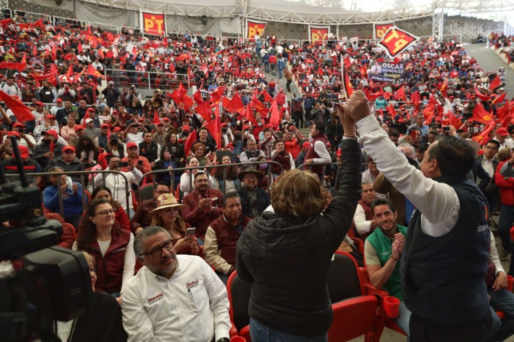 En sendos actos multitudinarios, los dirigentes, militantes, simpatizantes de los partidos del Trabajo (PT) y Verde Ecologista de México (PVEM) aseguraron el respaldo a la maestra Delfina Gómez y la recibieron con gusto como su precandidata a la gubernatura del Estado de México, en el proceso cuya jornada electoral será el 4 de junio próximo. ooOoo