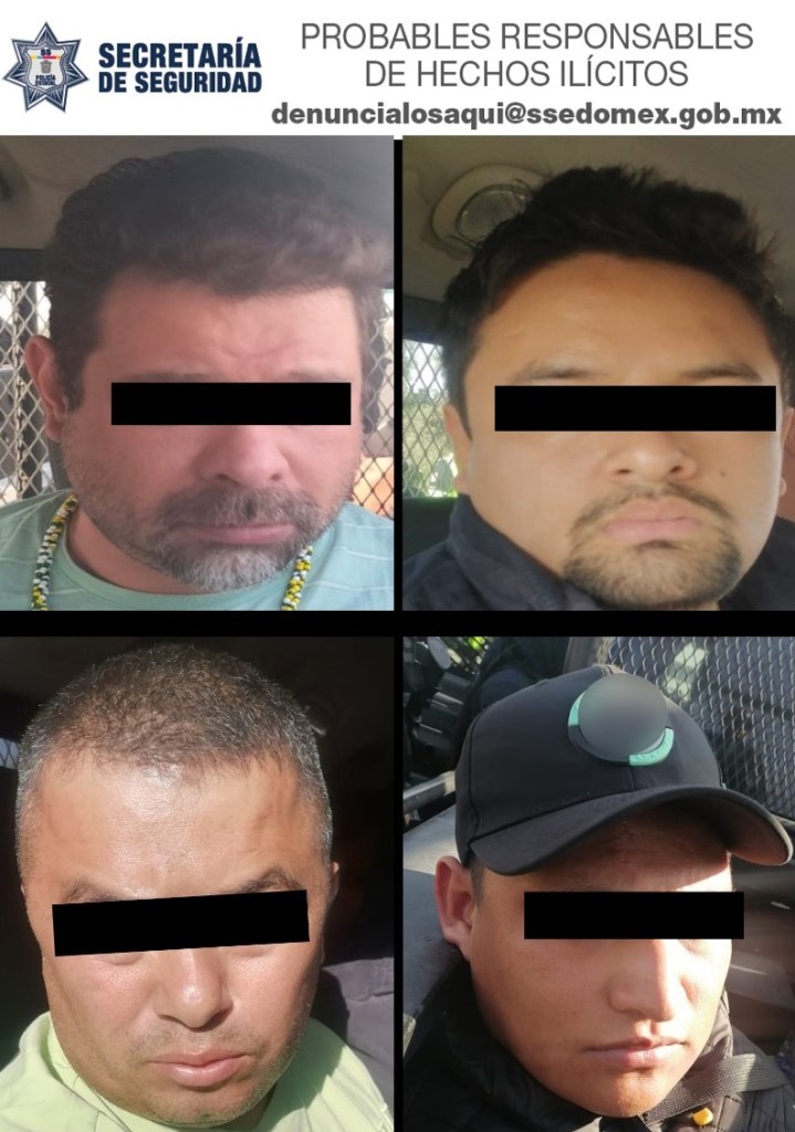 Por lo cual, tras confirmar que el primer vehículo era el motivo del alertamiento y luego de leerles los derechos que la ley confiere, los uniformados trasladaron a Ricardo “N”, Byron “N”, Francisco “N”, Kristopher “N” de 40, 27, 29 y 39 años de edad, respectivamente, junto con lo asegurado ante la Fiscalía Regional de San Cristóbal con sede en Ecatepec, donde se resolverá su situación jurídica.