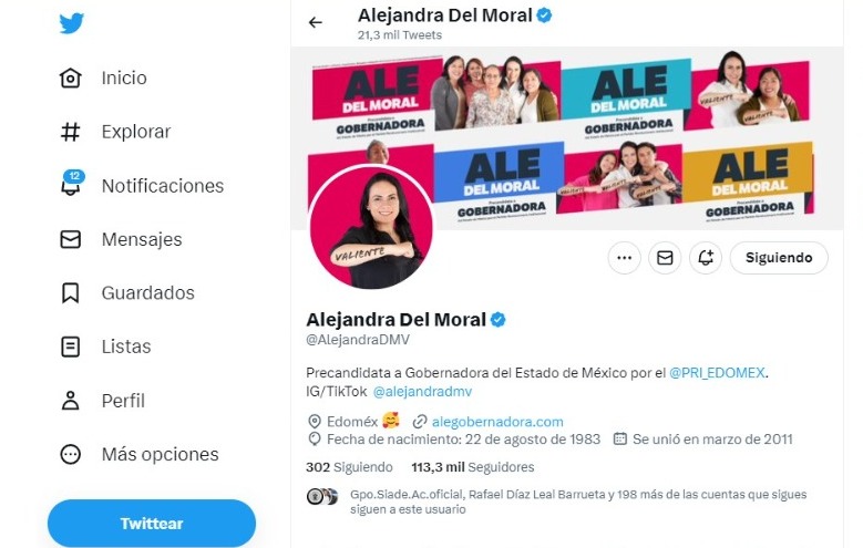 Mientras que la precandidata de la alianza PRI-PAN-PRD-NA, tiene en Facebook 171 mil seguidores y en Twitter 113,3 mil seguidores.