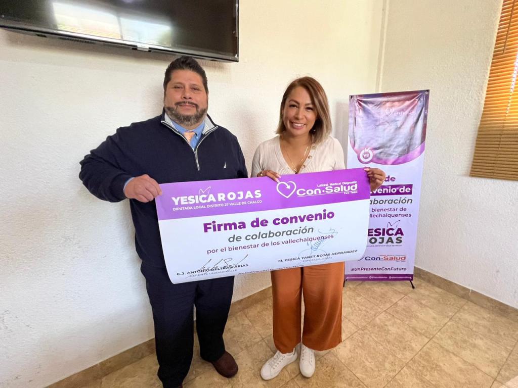 Valle de Chalco, Méx.- La diputada de Morena, Yesica Rojas Hernández firmó un convenio de colaboración con Laboratorios Clínicos ConSalud, con el propósito de que los habitantes del municipio de Valle de Chalco tengan acceso a estudios de laboratorio a bajo costo.