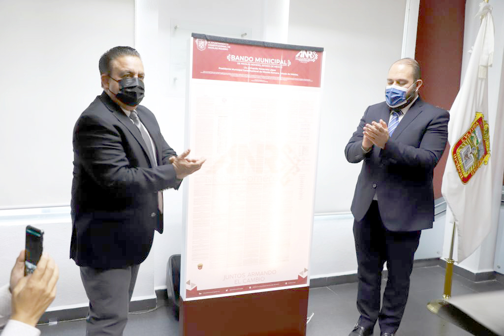 Nicolás Romero, Méx.- El cabildo que encabeza el alcalde Armando Navarrete López, promulgó el Bando Municipal 2023, el cual contribuye a la consolidación de esta demarcación como una ciudad de derechos y libertades, a través de un ordenamiento jurídico de carácter vanguardista, innovador, moderno, ajustado a las necesidades de la población y el único a nivel nacional reconocer el derecho humano a la buena administración pública.