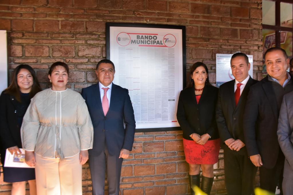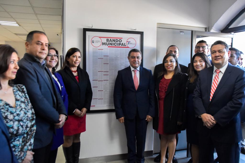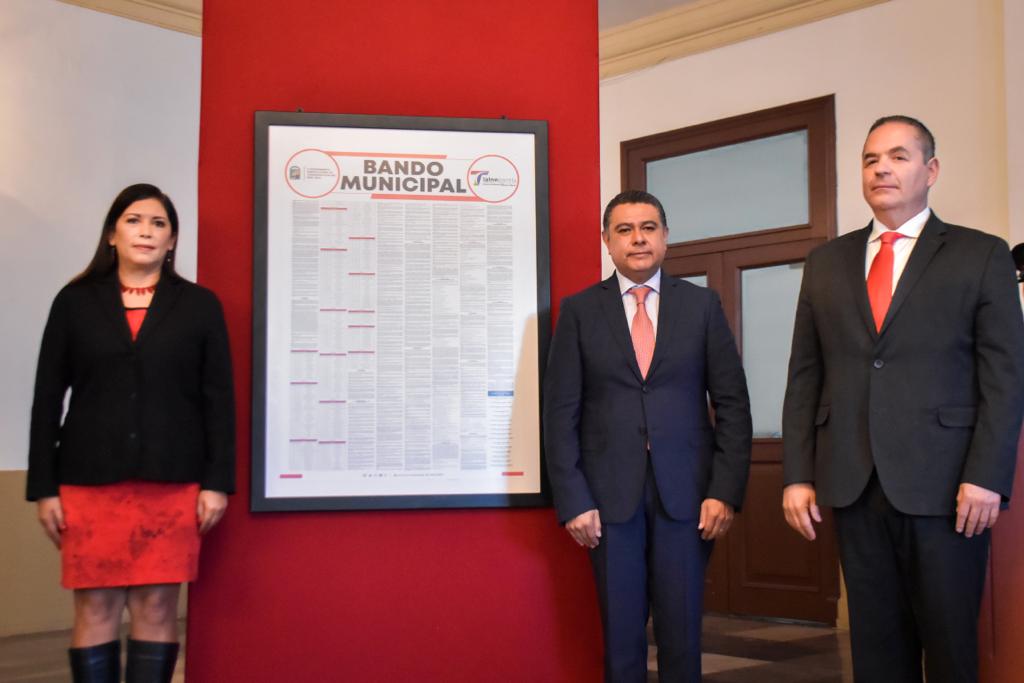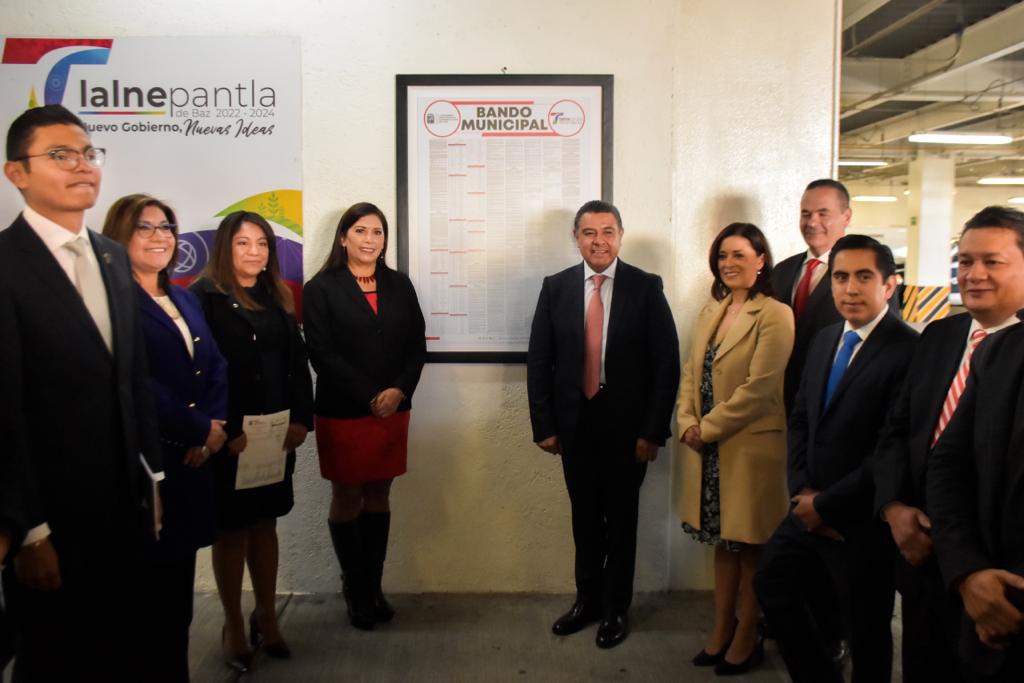 Acompañado de la Secretaria de Desarrollo Social del Gobierno Estatal, Brenda Alvarado Sánchez, el Alcalde publicó el Bando Municipal en la entrada del Palacio Municipal, el acceso al Organismo de Agua (OPDM), La Comisaría de Seguridad Pública y el Sistema Municipal DIF en Santa Mónica, a fin de que los tlalnepantlenses conozcan los ordenamientos que se establecen en este documento.