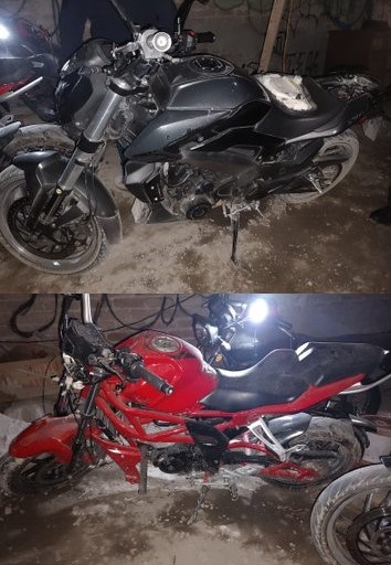 Una vez que este mandamiento judicial fue otorgado, personal de esta Fiscalía estatal se trasladó e incursionó en el domicilio, donde fueron hallados envoltorios con hierba verde con las características de la marihuana, un arma de fuego calibre 45 mm, con cinco cartuchos útiles, además fueron aseguradas y recuperadas dos motocicletas, una marca Italika y otra Bajaj, con reporte de robo vigente.