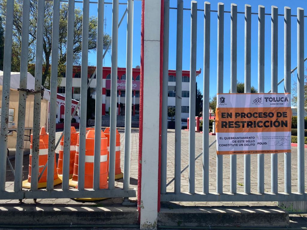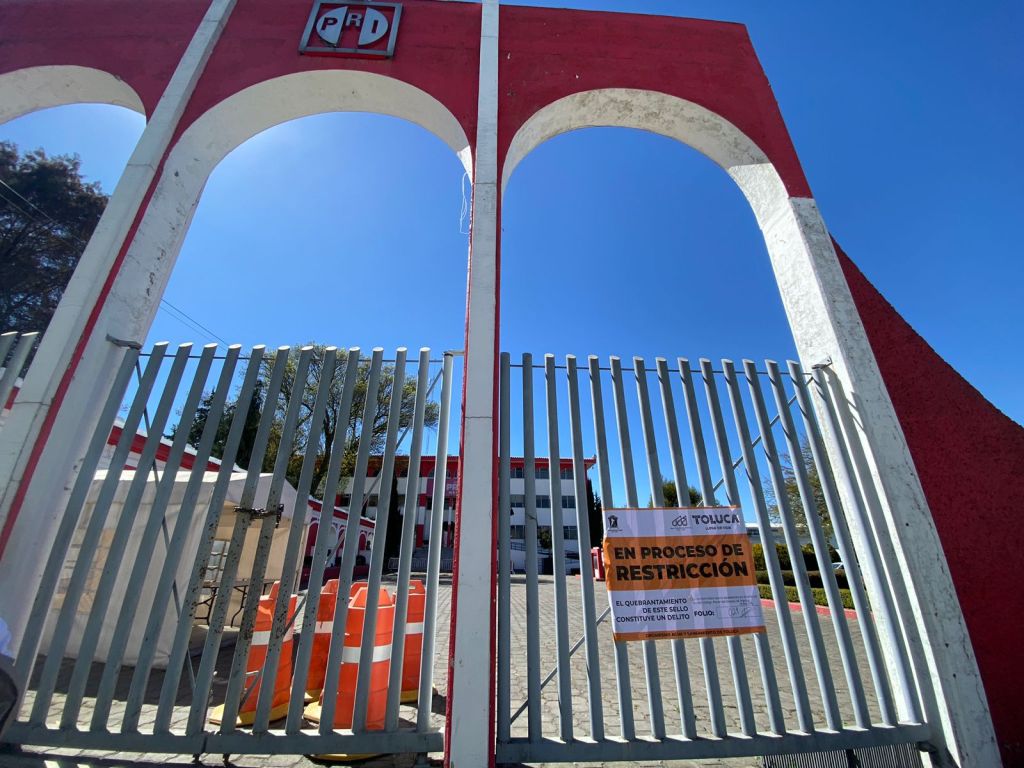 En las puertas de las oficinas del PRI Estatal, ubicadas sobre la vialidad Alfredo del Mazo s/n esquina Dr. Nicolás San Juan de la Colonia Exhacienda la Magdalena se colocaron los sellos de restricción por parte del personal del Organismo de Agua y Saneamiento de Toluca.