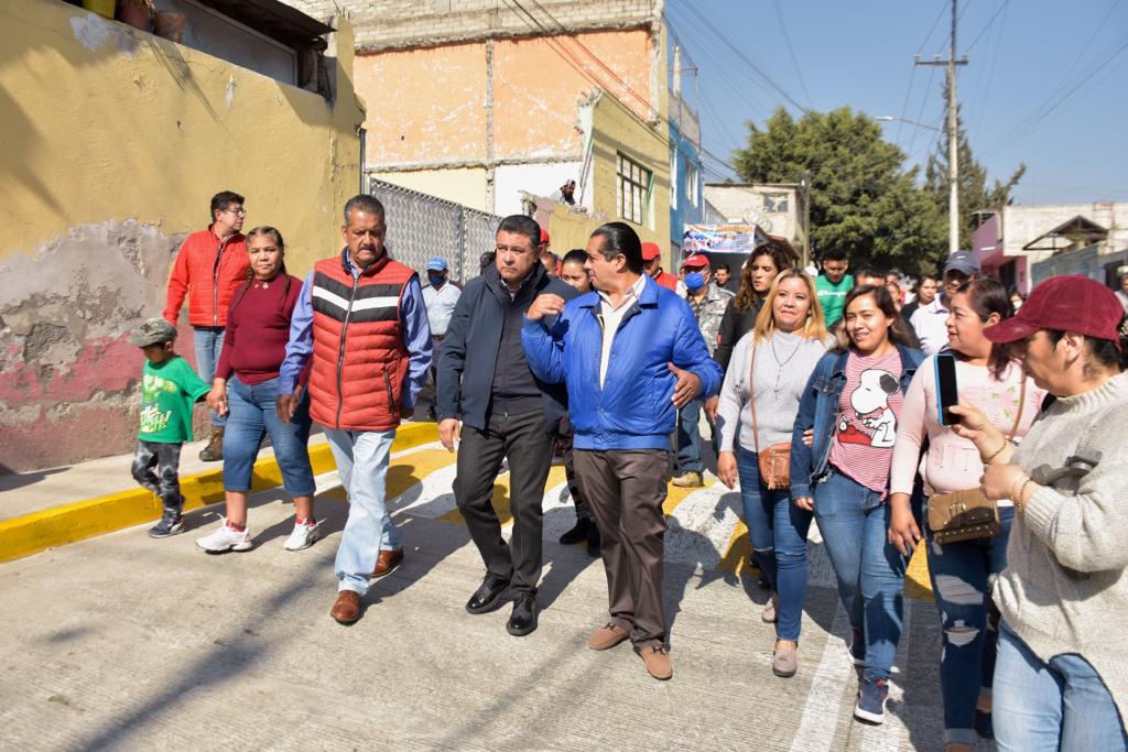 Tlalnepantla, Méx .- El Alcalde Marco Antonio Rodríguez Hurtado entregó este sábado la repavimentación de las avenidas Hermilo Mena y Vicente Guerrero de San Juan Ixhuatepec, y puso en marcha los trabajos de rehabilitación en la calle Copal del fraccionamiento Lomas de Lindavista; aseguró que la zona Oriente es una prioridad para su administración, por lo cual han sido invertidos cerca de 100 millones de pesos en la sustitución de 100 mil metros cuadrados de vialidades.