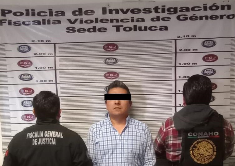 Toluca, Méx.- Elementos de la Fiscalía Central para la Atención de Delitos Vinculados a la Violencia de Género de la Fiscalía General de Justicia del Estado de México (FGJEM), y la Secretaría de Seguridad y Protección Ciudadana (SSPC), a través de la Comisión para la Atención del Delito de Homicidio Doloso (CONAHO), cumplimentaron la orden de aprehensión.