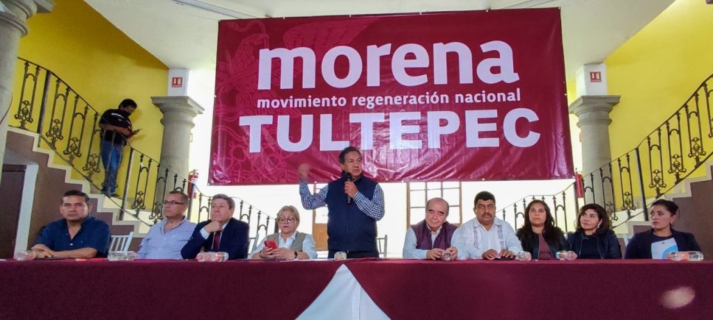 Tultepec, Méx.- Esta municipalidad se vio engalanada con la reunión de diversas corrientes del Movimiento de Regeneración Nacional (MORENA), encabezada por el delegado especial en la entidad mexiquense, Doc. Higinio Martínez y por la presidenta del Comité Ejecutivo Estatal, Martha Guerrero. Siendo el anfitrión el Profesor, Sergio Luna Cortes.