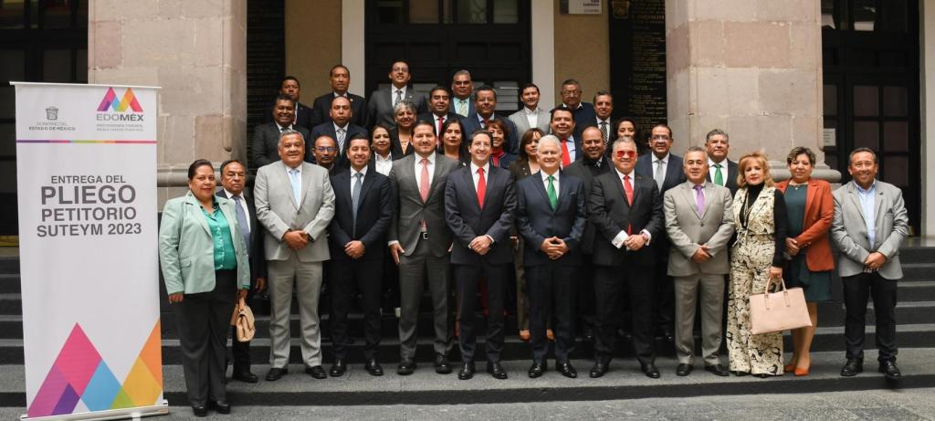 Integrantes del Sindicato Único de Trabajadores del Estado y Municipios (SUTEYM), entregaron al gobierno mexiquense entregaron al gobierno el pliego petitorio 2023.