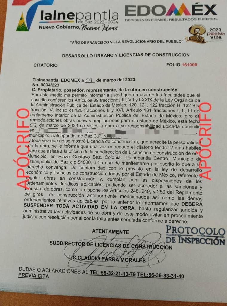 Por su parte, el Municipio ya presentó dos denuncias por uso de documentos falsos, usurpación de funciones y lo que resulte, ante la Fiscalía General de Justicia del Estado de México (FGJEM).