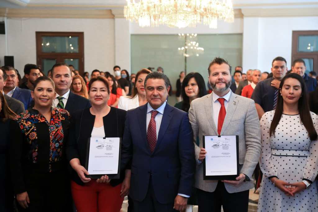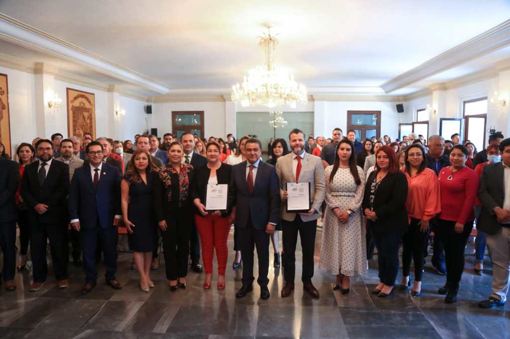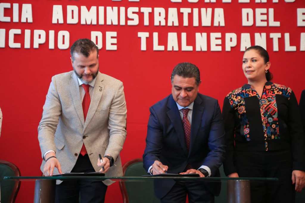 Tlalnepantla, Méx.– Marco Antonio Rodríguez Hurtado, Presidente Municipal de Tlalnepantla de Baz, y Gerardo Becker Ania, Magistrado Presidente del Tribunal de Justicia Administrativa del Estado de México, signan convenio de colaboración, a favor de la ciudadanía, el cual permita resolver de manera pacífica problemas sociales de diferente disposición jurídica, por medio del orden y la mediación de los interesados.