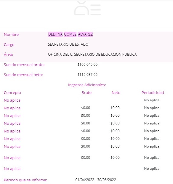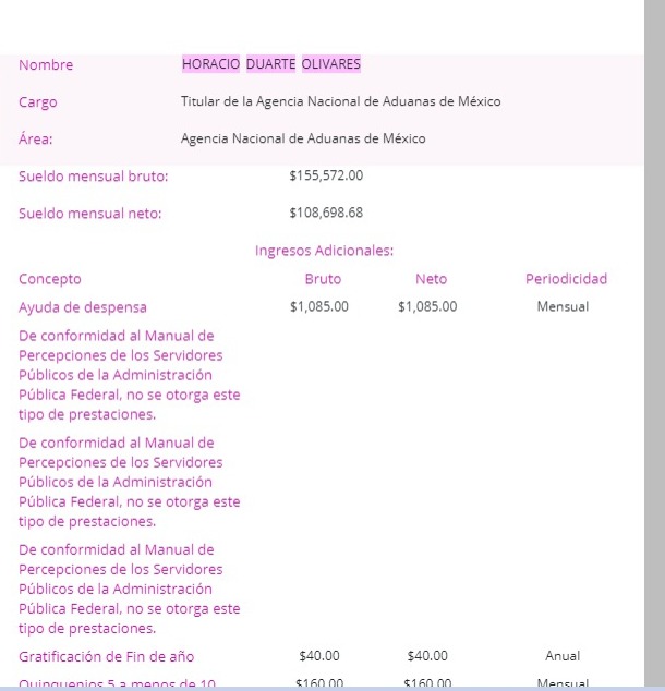 Más aún, desde sus cargos federales nunca se bajaron el sueldo y tuvieron percepciones salariales al mes de 108 mil 698 pesos como fue el caso de Horacio Duarte Olivares al frente de la Agencia Nacional de Aduanas de México o los 115 mil 037 pesos que ganaba Delfina Gómez Álvarez siendo titular de la Secretaría de Educación Pública.