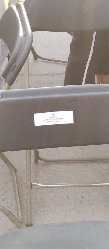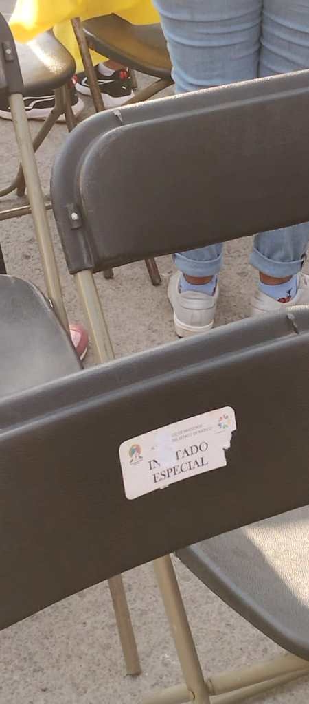 En los eventos también había asientos con calcomanías para reservar lugares a “invitados especiales” del Sindicato de Maestros al Servicio del Estado (SMSEM) y a “beneficiario (a) del programa Comunidad Fuerte”.