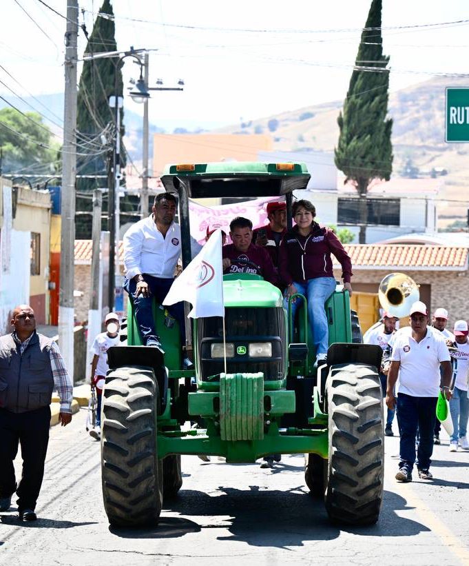 JUCHITEPEC, Méx.- La maestra Delfina Gómez, candidata de MORENA, PT y PVEM a gobernadora del Estado de México, realizó un amplio recorrido en tractor por tierras agrícolas en el municipio de Juchitepec, donde ante cientos de campesinos y comerciantes se comprometió a reforzar los apoyos para este sector productivo.