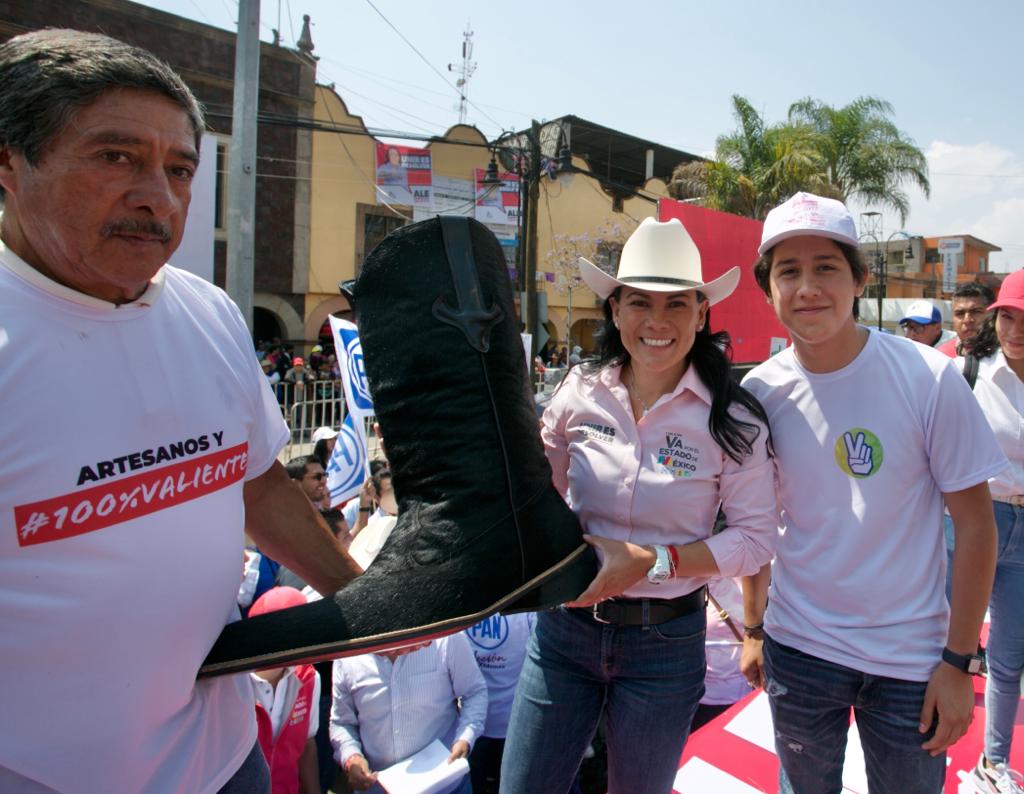 Luego de dar inicio a la tercera semana de campaña, la candidata del PRI, PAN, PRD y Nueva Alianza destacó que “desde San Mateo Atenco impulsaremos los apoyos crediticios para los productores del calzado, para que sigan siendo los mejores del país en la elaboración de zapatos”.