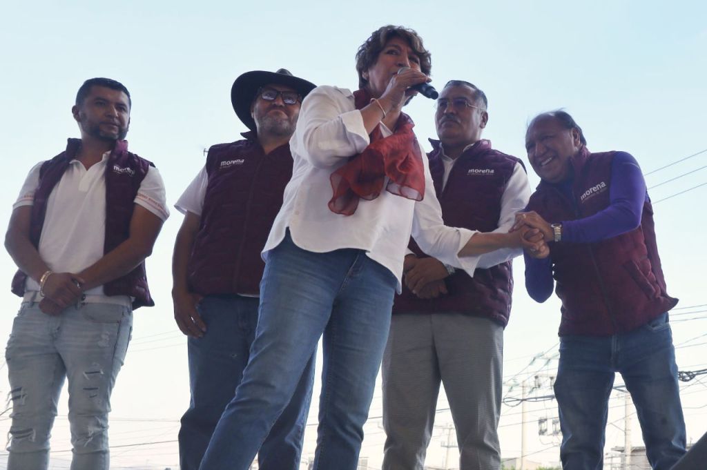 En diferentes municipios como en San Martín de las Pirámides, y Teotihuacán, la maestra Delfina Gómez les levantó el brazo, y atestiguó cuando se colocaron la playera y la gorra de MORENA frente a miles de personas que se congregaron en sus actos proselitistas, y quienes gritaron “¡Que sí, que no, Delfina ya ganó!”.