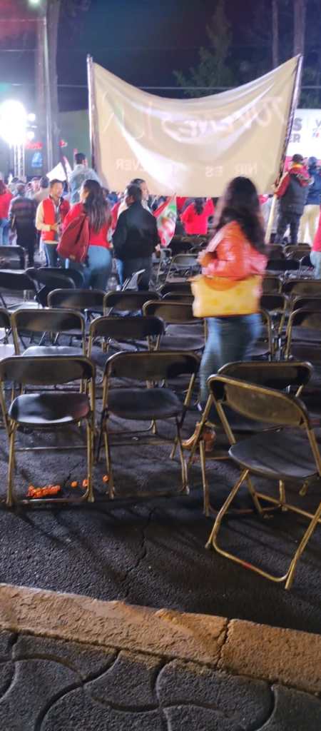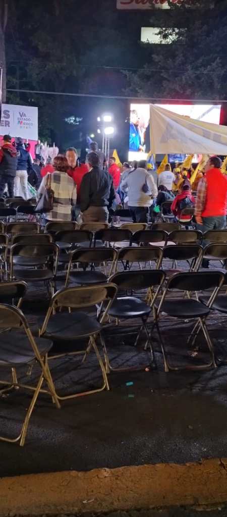 El pueblo ya despertó, han sido muchos agravios del PRIAN: El vacío en el “festejo” de Del Moral refleja que ya se van. Toluca, Méx.- Mientras a la maestra Delfina Gómez Álvarez fue recibida afuera de las instalaciones del IEEM, con abrazos, porras, tambora y vítores, por parte de cientos de personas, y gritos de Gobernadora”; en la Glorieta de las Águilas, en donde celebrarían el supuesto “triunfo” de la abanderada del PRI-PAN-PRD, Alejandra del Moral, no llegaron los simpatizantes aliancistas, lo que provocó la ausencia de la aspirante tricolor en el evento, como reflejo del hartazgo de la gente que ha sido agraviada por décadas. ¡Ya llegó, ya está aquí, la que va a sacar al PRI!, y “es un honor estar con la mejor”, así recibieron cientos de seguidores a la maestra Delfina Gómez, candidata de Morena-PT-PVEM, al salir del primer debate a la Gubernatura por la puerta principal del órgano electoral estatal, mientras su contrincante, la candidata tricolor salió por la puerta trasera de la dependencia a bordo de su camioneta. La campaña de la aspirante del PRIAN, había convocado a sus seguidores a reunirse en la Glorita de las Águilas con enormes pantallas y grupos musicales, para “festejar” el supuesto triunfo de Del Moral, como pregonaron en redes sociales, a pesar de que prevaleció el ataque y la difamación contra la maestra Delfina Gómez. Sin embargo, a pesar del acarreo de simpatizantes, quedaron cientos de sillas vacías, lo que provocó que Alejandra del Moral no acudiera a un evento vacío y en su lugar asistiera solo el dirigente del PRI, Eric Sevilla. “Este evento vacío habla de que están desfondados, ya nadie les cree porque han sido muchos agravios a la ciudadanía del Estado de México por más de 90 años”, afirmó la diputada Azucena Cisneros. Y agregó que tras los vacíos del festejo, en comparación con el cálido recibimiento que tuvo la maestra Delfina afuera del IEEM “solo reflejan que ya se van y que el pueblo ya despertó”.