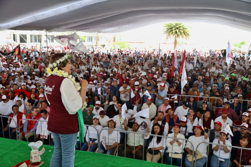 Delfina Gómez ante más de 30 mil morenistas de Nicolás Romero, expuso sus propuestas acompañada y respaldada por Martha Guerrero, presidenta del Comité Ejecutivo Estatal de MORENA; José “Pepe” Couttolenc, secretario general del PVEM en el Estado de México; así como de Norberto Morales Poblete dirigente estatal del Partido del Trabajo.
