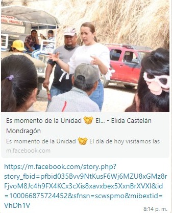 A días de la jornada electoral del 4 de junio y en plena veda electoral, en Tejupilco, la diputada local del PRD, María Elida Castelán fue denunciada públicamente por vecinos de varias comunidades por el reparto de despensas a cambio del voto a favor de la candidata del PRI, Alejandra del Moral, hecho documentado a través de un video.